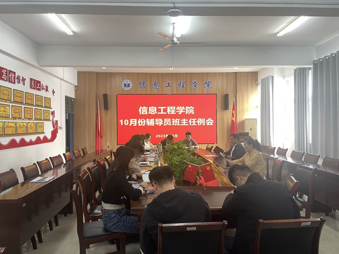 本学期选聘了9名专任教师担任9个班级的班主任。吴孝银副书记首先带大家一起学习了信息工程学院选聘班主任工作实施办法(试行),强调了班主任工作职责和考核办法。