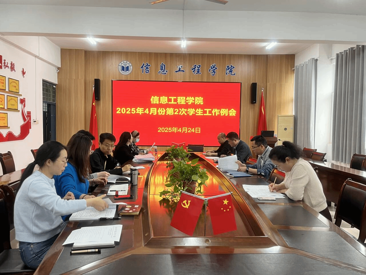 2025年4月24日上午,信息工程学院在工B315会议室召开4月份第2次学生工作例会。本次会议由信息工程学院党委副书记、纪委书记吴孝银主持,信息工程学院党委书记余晓永、信息工程学院正处级组织员黄永刚、信息工程学院教学副院长潘正高和全体辅导员参加了会议。