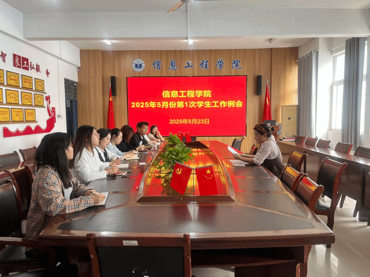 5月23日下午,信息工程学院在工B301会议室召开5月份第1次学生工作例会,会议由党委副书记、纪委书记吴孝银主持,各年级辅导员参会。会议围绕毕业班工作、学风建设、心理健康教育等重点任务展开部署。