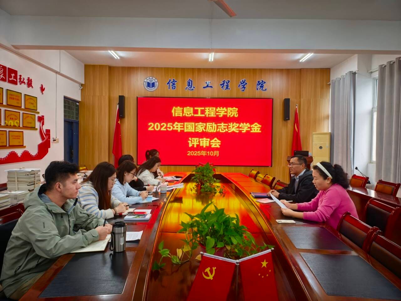 2025年10月14日,信息工程学院在工b315组织召开2025年国家励志奖学金评审会。为保障评审工作权威规范,学院成立了由党委书记余晓永担任组长,党委副书记、院长崔琳,党委副书记、纪委书记吴孝银担任副组长,全体辅导员为成员的国家励志奖学金评审小组。评审会议由组长余晓永主持,他强调要严格遵循"公开、公平、公正"原则,确保将奖学金精准评定给品学兼优的家庭经济困难学生,充分发挥其激励作用和育人功能。