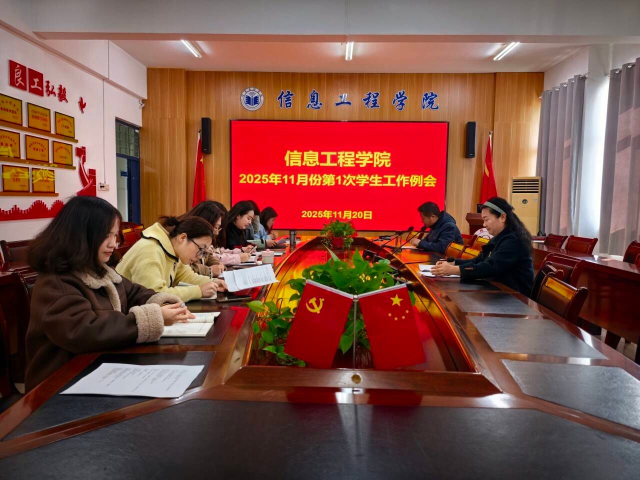 为统筹推进各项学生工作有序开展,及时解决工作中的重点难点问题,11月20日上午,信息工程学院在工B315会议室召开11月份第1次学生工作例会。会议由信息工程学院党委副书记、纪委书记吴孝银主持,信息工程学院教学副院长潘正高及全体辅导员参加了会议。