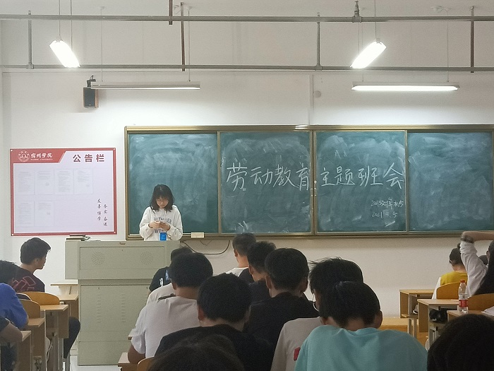 主题讲座上团支书指出热爱劳动是中华上下五千年的传统美德,强调“民生在勤”的思想,以克洛克的小故事,引导同学们热爱劳动、尊重劳动、投身劳动。同学们认真听讲,积极与团支书进行互动。
