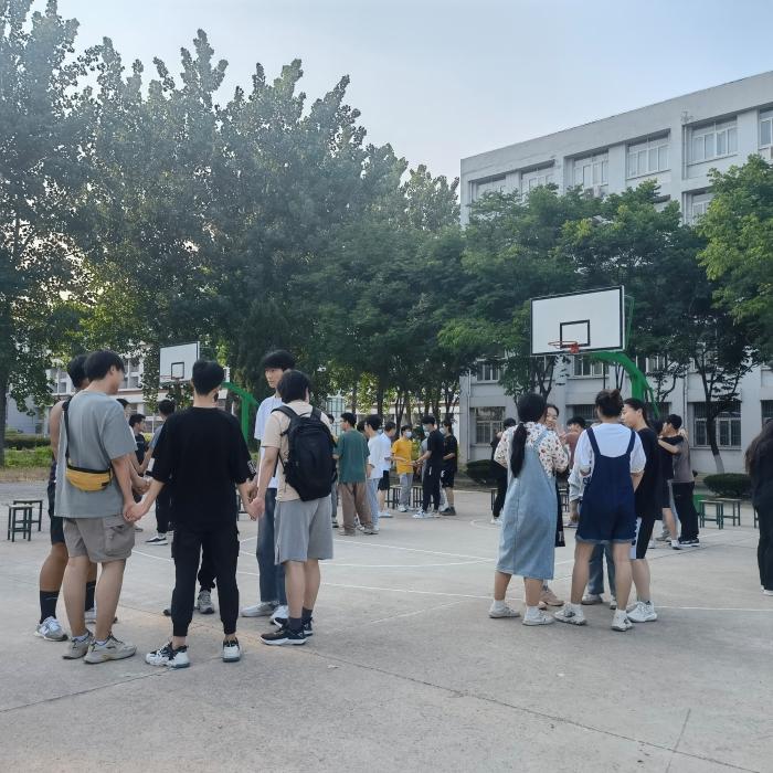 活动以三个小游戏作为开场,分别为第一个游戏:“大西瓜,小西瓜”,第二个游戏:“嘴巴、手指不一样”,第三个游戏:“萝卜蹲”通过这三个小游戏,班级同学们的积极性被顺利调动起来。正式游戏开始首先为桃花朵朵开:要求成员根据领导者的指令抱团,单独的同学则判定为淘汰。在此游戏中需要同学们眼疾手快找准队伍。第二个游戏为众所周知的抢椅子游戏,同学们你争我抢好不痛快。第三个游戏是敞开心扉,让同学们彼此了解。最后压轴的游戏为“背后的留言”。让当面说不出来的话可以写在留言纸上传递给对方。