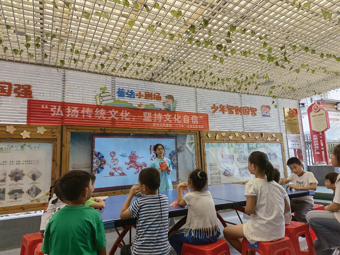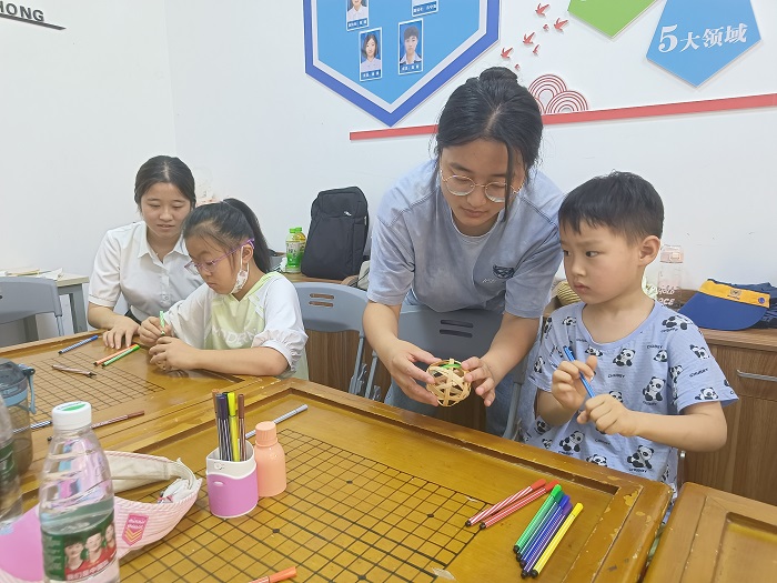 7月9日,21计算机7班的胡洪、孟雅婕、樊星宇等同学跟随宿州学院暑期“三下乡”教育关爱服务团前往合肥市瑶海区三里街凤阳一村快乐儿童俱乐部开展了为期10天的“弘扬传统文化、坚持文化自信”主题活动。带领小朋友们分享了剪纸、中国结、蹴鞠、文物、国画、家书、花灯、皮影戏、折扇、围棋、茶文化、投壶、射箭、书法、脸谱、丝绸等国粹知识。