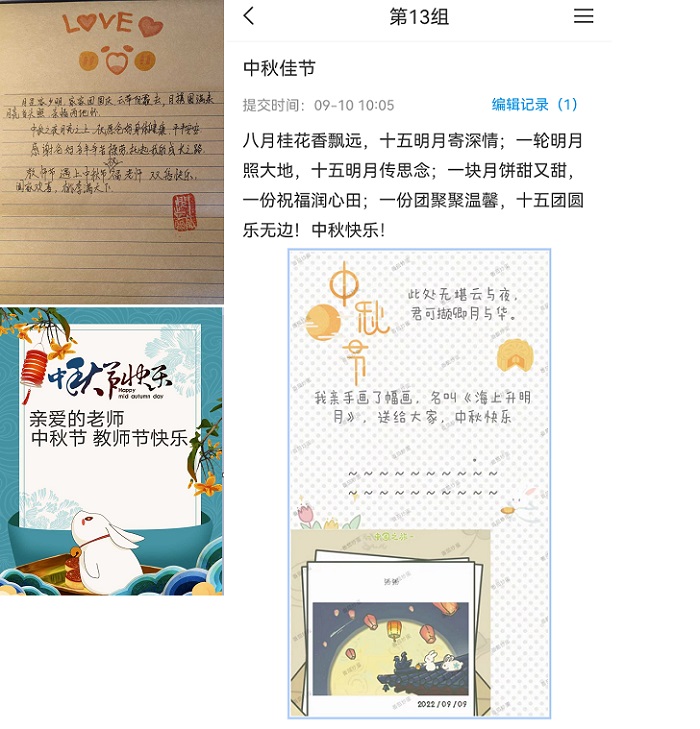 此次活动丰富同学们中秋的课外生活,表达了自己对家人的思念。“海上生明月,天涯共此时。”愿此刻的中秋佳节,不论我们是否身在异乡,是否与家人团圆,都能借此次活动,抒发自己的相思之情。