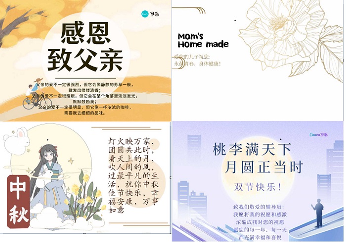 活动以线下制作贺卡的方式开展,5班全体同学参与。同学们有的利用身边的材料,亲手制作了纸质的贺卡,贺卡上面的每一张插画每一段文字,都表达了对被祝福者的美好愿望。有的利用网络软件,制作了精致的电子版贺卡,细心考究的排版流露出对心中之人的思念。制作完成后,同学们把贺卡统一提交在学习通上由辅导员和部分同学进行评价,我相信不论分数如何,同学们心中的相思之情永远也不会改变。
