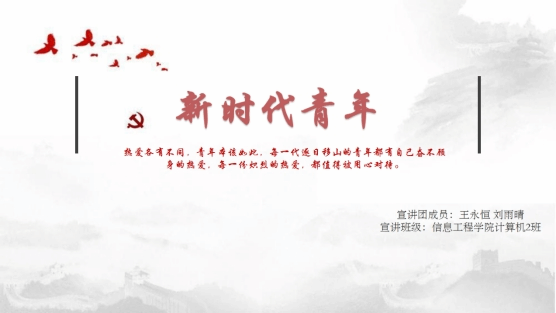 为全面贯彻提高青少年的动力就像我背后的屏幕那一行小字说的一样,热爱各有不同,青年本该如此,每一代逐日移山的青年都有自己奋不顾身的热爱,每一份炽烈的热爱,都值得被用心对待。信息工程学院大学生理论宣讲团于10月11日下午4:30在实训楼a201开展了“学习党的二十大精神,做新时代青年”主题宣讲活动。