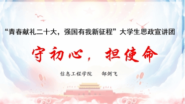 为学习贯彻习近平总书记在庆祝共青团成立100周年大会上的重要讲话精神,信息工程学院大学生理论宣讲团于十月十日下午在实训楼开展了“守望初心,担当使命”主题宣讲活动。