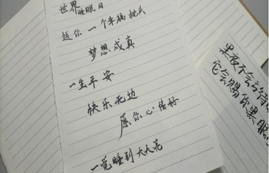 清风送爽,碧空澄澈。天微凉,工作人员们已全部到达教室,准备就绪。参赛选手陆陆续续来到教室,比赛开始之前,工作人员强调比赛的时间及相关事情。比赛开始,参赛选手正襟危坐,笔下阴影快速移动,行云流水,现场只有笔珠转动的声音,立谈之间,纸上浮起句句字语,抒发着对睡眠的见解和想法。“一切有生之物,都少不了睡眠”、“良好的睡眠是一个可以实现的梦想”、“睡眠是一门艺术,那么谁也无法阻挡我追求艺术的脚步”等等语录,表现了同学们对良好睡眠的重视。睡眠质量差、失眠,都会影响日常生活,降低工作质量,高质量的睡眠有助于提高警觉性,改善第二天的状态,提高生活质量。
