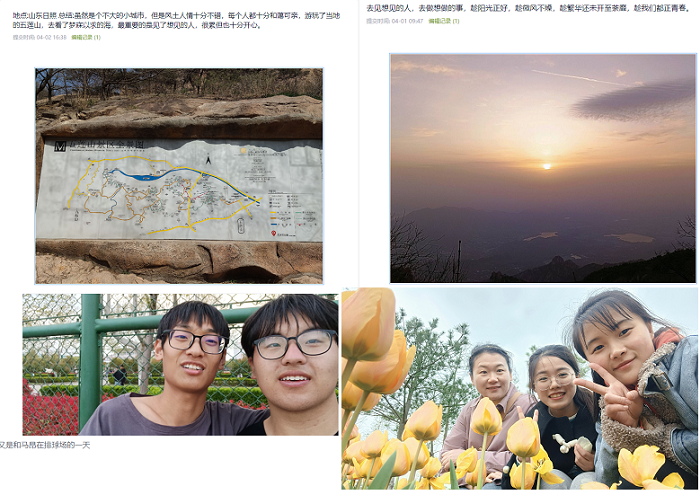 青春没有售价,泰山就在脚下。许多同学组队去夜爬泰山,大家一起走十八盘阶梯,吹玉皇顶大风,他们说说笑笑互相鼓励爬山,从午夜爬到清晨,勇敢的他们与太阳同时立足于泰山之巅。