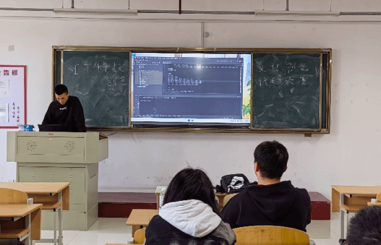 本次比赛考察了各位参赛选手的个人知识程度和临场应变能力,比赛现场井然有序,选手们热情高涨,信心十足。在比赛过程中,每个参赛选手双眼紧盯电脑屏幕,十指飞快地敲击着键盘,一行行整齐的代码呈现在多媒体上,选手以认真的态度及强大的随即应变能力,各有特色的讲解着代码的设计原理,在面对讲台下的评委及听众时毫不慌张,以生动形象的语言讲解着他们参赛的代码,每个人的代码简洁明了,通俗易懂,讲解完毕后得到了其他参赛选手及评委的掌声和认可,比赛的紧张氛围也因此缓和了起来。激烈地比拼过后,最终的结果也就见分晓了。评委根据每个参赛者的代码创意性和临场发挥能力进行打分,决出一等奖、二等奖、三等奖。