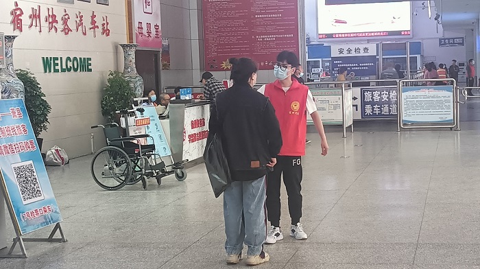 活动召开前,班长和团支部书记与宿州汽运集团宏远志愿服务队负责人段海燕女士联系,商议志愿服务的相关事宜。4月19日下午2时,同学们抵达客运站,在工作人员对大家讲解工作内容和明确分工后,大家迫不及待,纷纷行动起来。