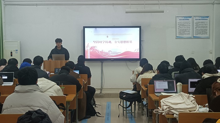 此次学习由班长李骏主持。在学习过程中,李骏同学分别从以学铸魂、以学增智、以学正风、以学促干等方面带领大家学习。