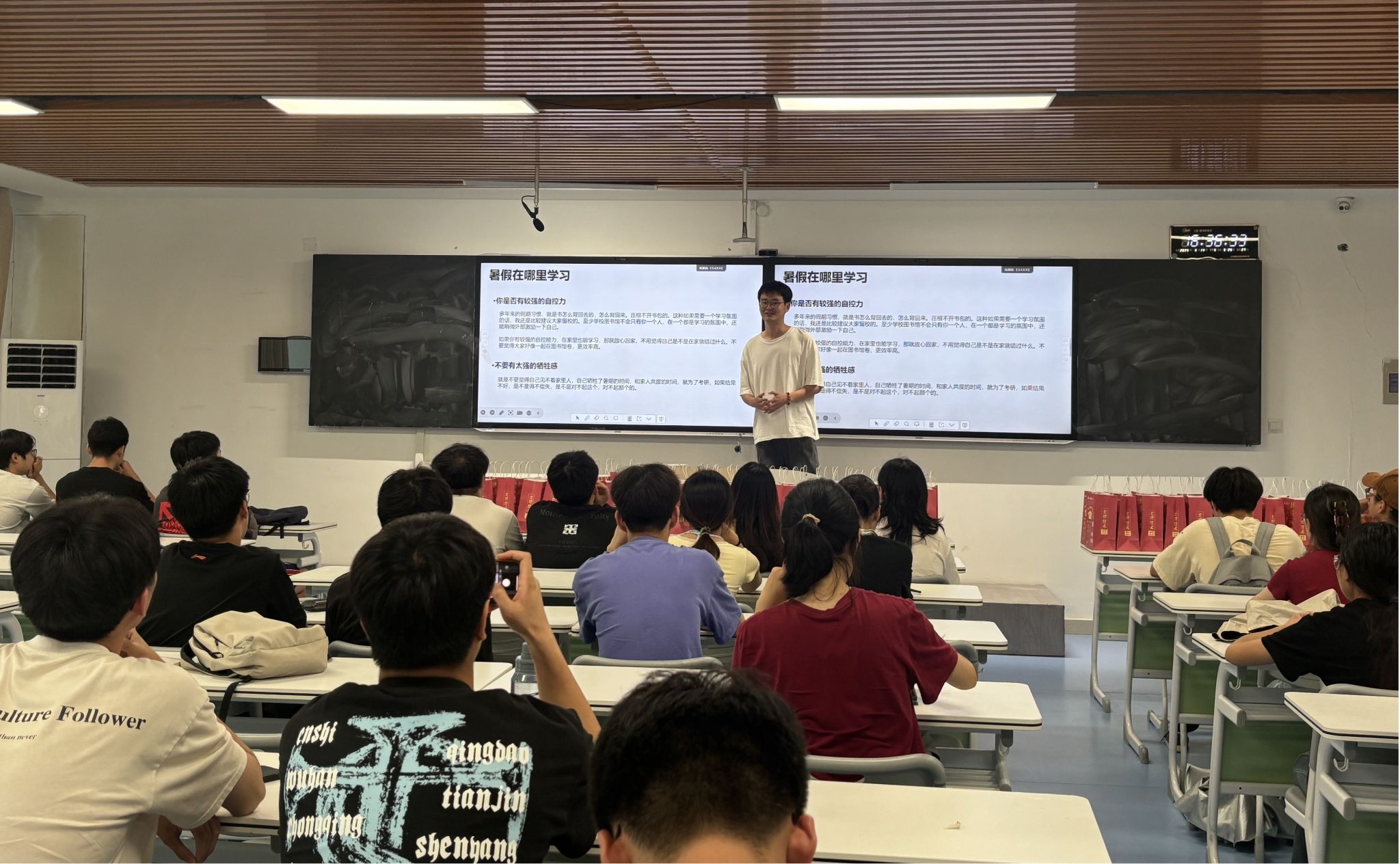 随后,优秀毕业生张峻豪学长分享了自己的考研经验。张峻豪学长以自身经历为切入点,从考研院校及专业的选择、备考计划的制定、学习方法的优化、心态的调整等多个方面进行了细致入微的讲解。他强调,在考研院校和专业选择上,要充分结合自身兴趣、专业优势以及未来职业规划,理性分析目标院校的报录比、考试科目等信息;在备考过程中,要制定科学合理的学习计划,合理分配时间,注重知识的系统性和逻辑性;面对备考过程中的压力和挫折,要学会自我调节,保持积极乐观的心态。张峻豪学长毫无保留地分享,让在场同学深受启发,现场不时响起热烈的掌声。