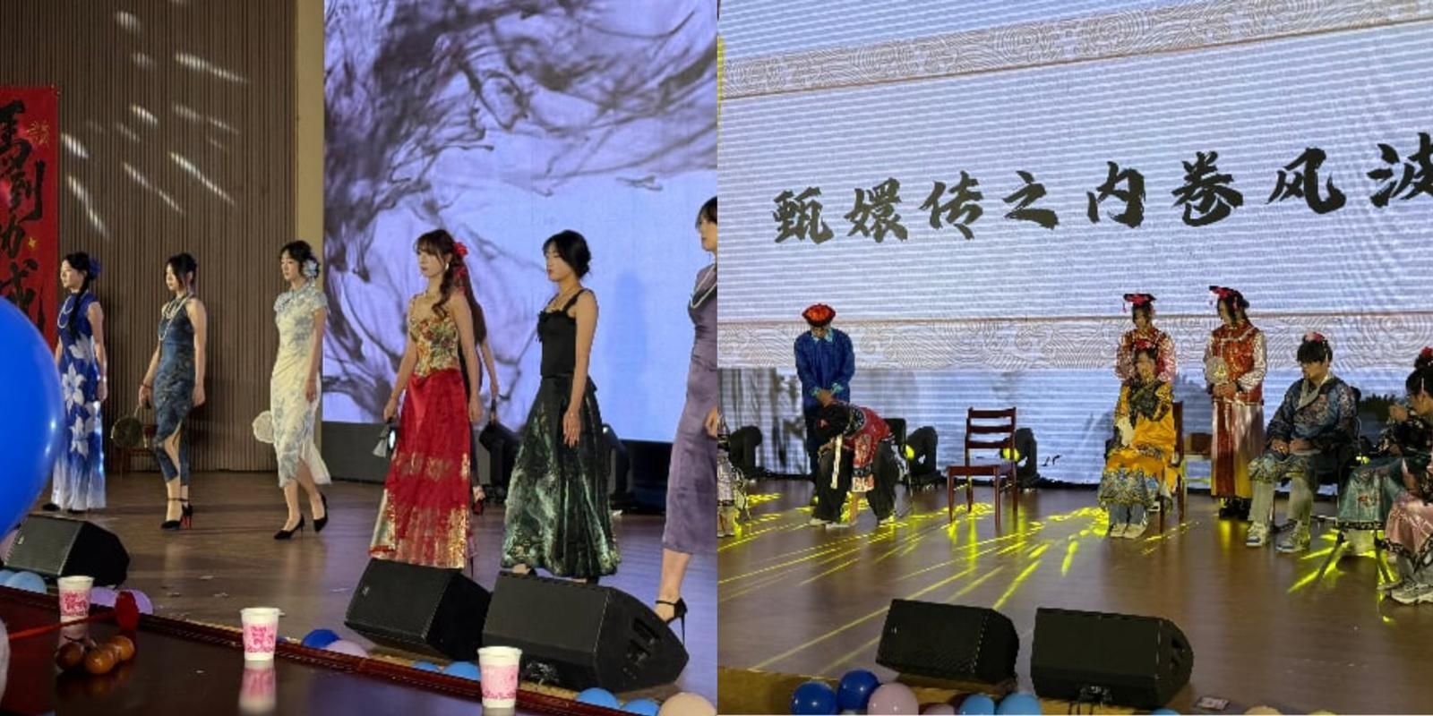 晚会在活力四射的开场舞《海芋恋》中拉开帷幕,此次元旦晚会还带来了很多形式多样的精彩节目,张万礼副院长的《冰雨》浑厚嘹亮,震撼全场;李莹莹老师的《大鱼》,清亮悦耳,荡气回肠;25计科1班的同学们表演的《甄嬛传反串表演——坚持将内卷进行到底》以幽默诙谐的剧情引得台下笑声不断。还有各班同学带来的优美动听的歌曲、激昂澎湃的走秀和舞蹈更是点燃了全场气氛。互动环节中,台下观众踊跃参与,营造了一个又一个小高潮。