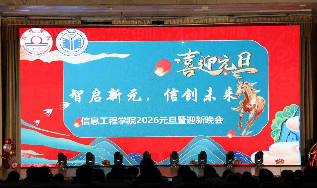 2025年12月26日,宿州学院信息工程学院“智启新元,信创未来”元旦晚会在大学生活动中心隆重举行。信息工程学院领导班子成员、全体辅导员、教师代表及2025级新生参加活动。