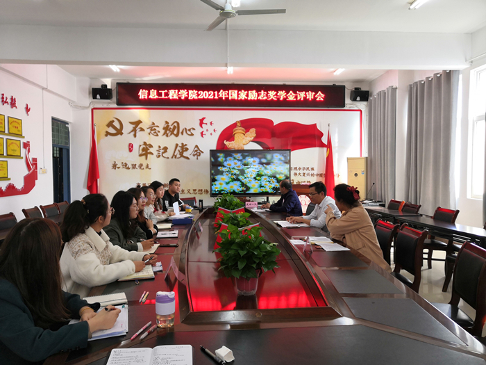 为切实做好2021年国家励志奖学金评审工作,做到公开、公平、公正,信息工程学院成立信息工程学院成立由党委副书记(临时负责)余晓永为组长,党委副书记、纪委书记吴孝银,副院长(科研)崔琳、组织员(副处级)黄永刚为副组长,全体辅导员和班主任为成员的国家励志奖学金评审小组,并于2021年10月18日,在工B315召开2021年国家励志奖学金评审会。