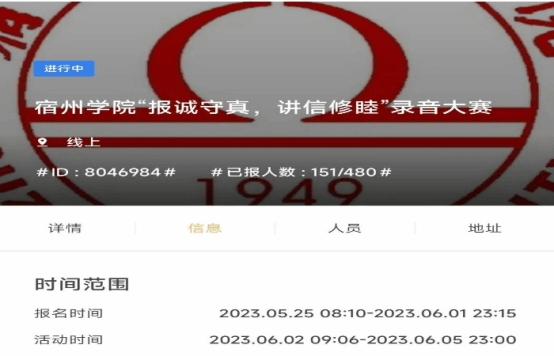 为了让学生们进一步了解国家资助政策,强化同学们的诚实守信意识,增强我院诚信育人的良好风尚。信息工程学院于2023年6月2日在线上举办了宿州学院“报诚守真,讲信修睦”录音大赛。参与本次活动的是宿州学院全体在校大学生。
