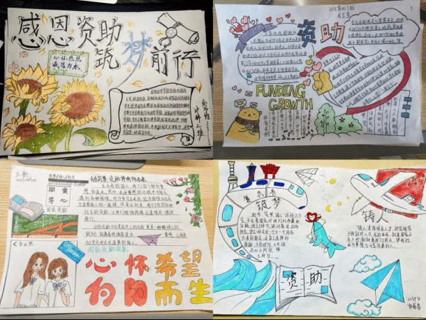 可以看到参与活动的同学们用心制作的手抄报。他们通过精美的排版、生动的插图以及深刻的主题内容,生动展现了对各项资助政策的了解和认知。通过线上提交的手抄报作品,同学们展示了各种资助政策的内容和申请方式。同时,同学们还通过实例和故事,生动展现资助政策给予学生们的帮助和支持,以及资助政策背后的温暖和关怀。这些作品不仅在形式上别具一格,更重要的是从内涵上反映了同学们对资助政策的深刻理解和感悟。
