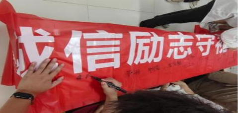 活动现场,同学们有序排队,眼神坚定而充满期待,手持签字笔,郑重地在横幅上写下自己的名字,一笔一划都饱含着对诚信与励志的承诺。现场不时响起热烈的掌声,传递着彼此的鼓励与支持。组织者不仅向同学们分享诚信与励志的重要意义,还结合自身经历,给予实用的成长建议,为活动增添了浓厚的教育氛围。