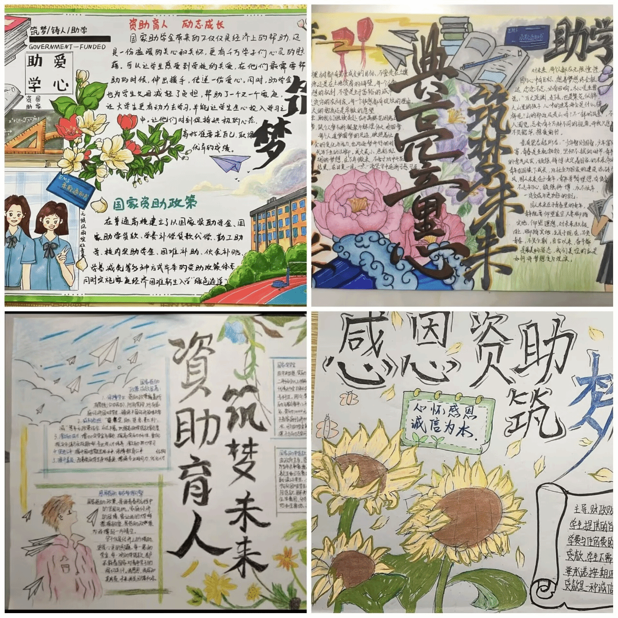 活动期间,同学们热情高涨,积极参与创作。他们紧扣“资助”主题,以笔为媒、以纸为介,将资助政策巧妙地融入到手抄报的设计之中。有的同学通过清晰的板块划分,详细呈现了国家奖学金、国家励志奖学金、助学金等各类资助项目的具体内容和申请条件;有的同学则运用生动的插画,描绘了受助学生的成长故事,展现了资助政策对学生成长的重要意义。同学们在创作过程中一丝不苟,一笔一划都尽显用心,充分体现了他们对资助政策的深刻理解和对活动的高度重视。