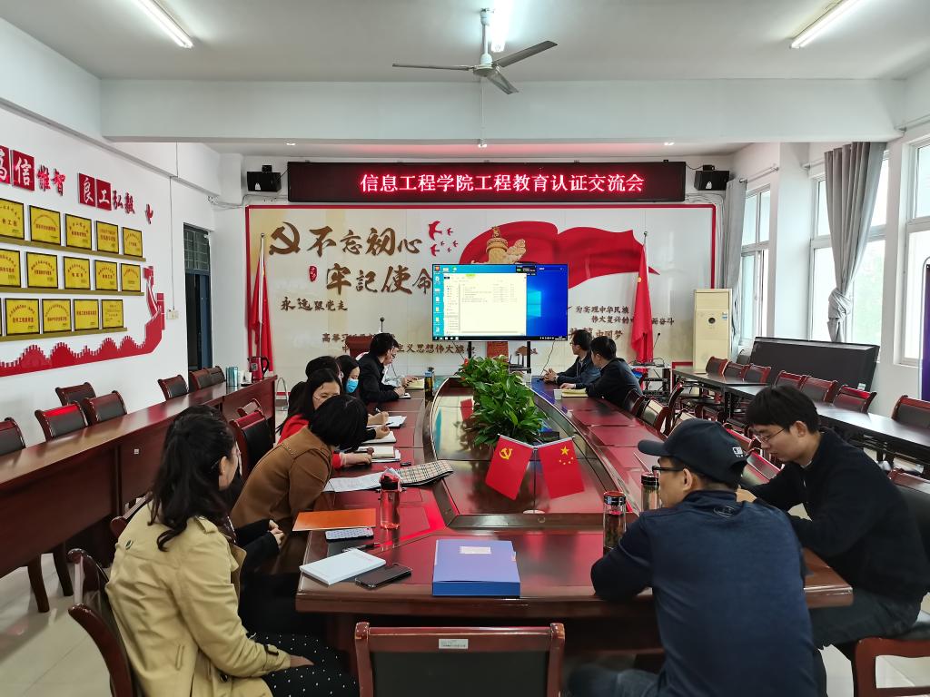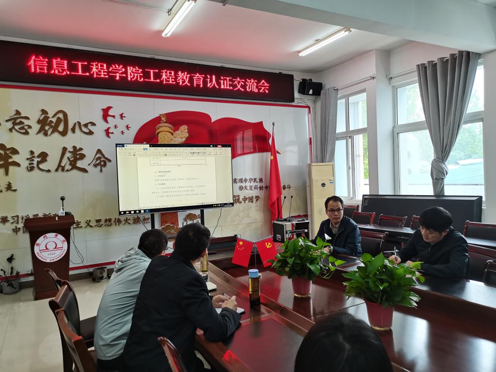为扎实推进工程教育认证工作,全面提高专业人才培养质量,4月29日下午,信息工程学院在工B315会议室召开工程教育认证交流会。会议邀请到外国语学院英语(师范)专业负责人李小鹏老师进行专业认证经验交流。信息工程学院工程教育认证工作组全体成员参加会议,会议由信息工程学院教学副院长潘正高主持。