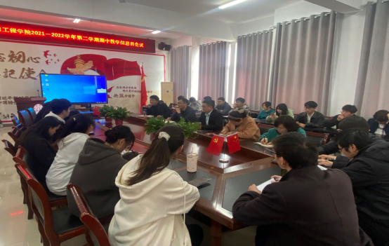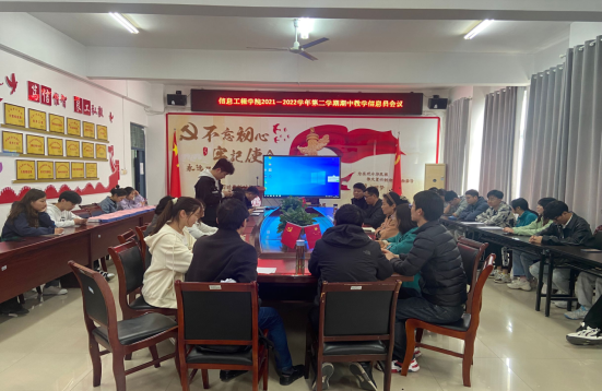 为更好地服务于教学,为提高教学质量保驾护航,信息工程学院教学督导组组长吴孝银以及督导组成员教学副院长潘正高,教研室主任徐旭、姜飞、张志伟与4月1日下午1点在工B315参加了学院2021-2022学年第二学期期中教学信息员会议。