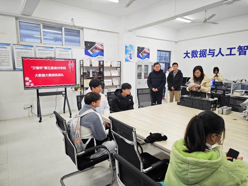 为在宿州学院普及大数据应用技术基本理论与知识,增强我校各专业学生把大数据应用技术与所学专业相结合的意识,提升各专业学生的大数据+创新创业能力,由宿州学院教务处主办,信息工程学院和安徽兰智大数据科技有限公司联合成功承办了“兰智杯”第五届宿州学院大数据大赛。此次大赛,共评选出一等奖16人、二等奖27人、三等奖31人。12月14日下午,在工科楼工B106成功举行了“兰智杯”第五届宿州学院大数据大赛颁奖典礼。参加此次颁奖典礼的有信息工程学院院长许海峰、科研副院长崔琳,安徽兰智数加学院总经理杨晓伟、校企事业部总经理徐强、企业就业处总经理杨旭,以及获奖同学。