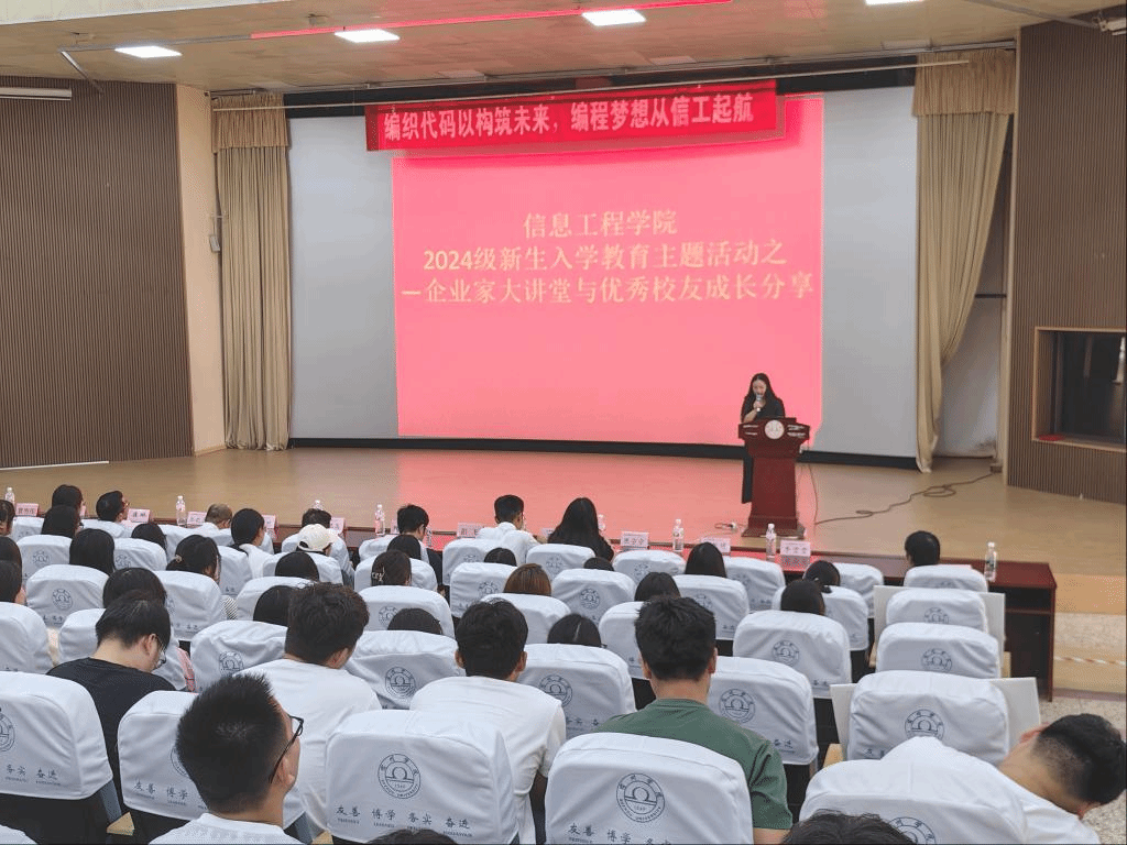 自2013年以来,信息工程学院每年都会在新生入学之际举办企业家大讲堂和优秀校友成长分享会活动。活动邀请知名企业家介绍IT行业的最新发展动态,以及市场对IT人才的知识、能力和素质的最新要求。同时,学院也邀请优秀校友分享他们的学习经历、生活经验和工作经验,以此帮助新生及其家长更好地了解学校的整体情况、专业特色、学业规划以及就业前景。此外,活动还展示了基于校企合作的应用型人才培养模式,旨在帮助新生树立专业认同感,培养专业兴趣,并为他们未来四年的学习和生活做好充分的准备。