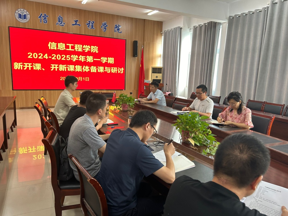 为强化教学管理,提高教师教学水平,确保新学期课堂教学质量, 9月1日下午15:00,信息工程学院在工B315教室“新开课、开新课”集体备课与研讨活动,学院党委书记余晓永、学院科研副院长崔琳(临时负责),教学副院长潘正高及开新课、新开课教师参加活动。