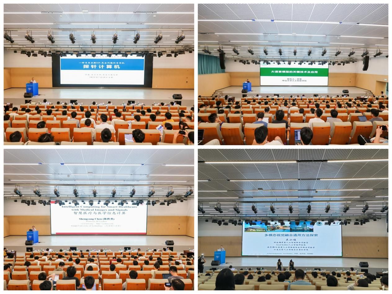 会上,北京大学许进教授以NP-完全问题的高效求解为核心目标,详细介绍了一款专为该类复杂问题设计的新型专用计算设备——探针计算机;中山大学印鉴教授深耕大语言模型领域,结合前沿研究实践,深入分享了其团队在关键技术突破、核心算法优化及多场景应用落地等方面的重要研究成果;天津理工大学陈胜勇教授围绕智慧医疗领域,探讨了医学信息计算相关内容;江南大学吴小俊教授聚焦多模态视觉融合通用方法,分享了其团队的多项开源工作,并探讨了视觉融合未来的发展方向;西安交通大学沈超教授通过线上报告,梳理AI安全脉络,分享了构建安全防护体系的思路和可信AI的研究方向。